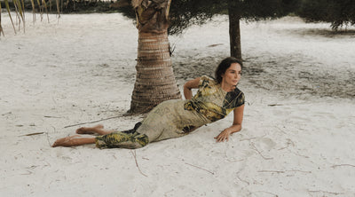 A very soft modal lightweight shirt in dark charcoal featuring a print inspired by the Huicholes Mexcian peyote design printed in four colours. It has a straight-cut bowling neck and a relaxed fit. IMAGINE's classical summer statement pieces that styles beautifully for every occasion.